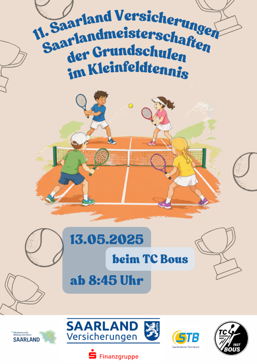Auch in diesem Jahr findet wieder die Saarländischen Tennis Grundschulmeisterschaften auf der Anlage des TC Bous statt. Am Mittwoch, dem 13.05., finden die Grundschulmeisterschaften bereits zum elften mal bei uns auf der Anlage statt.